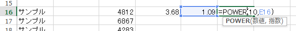 対数を常数に変換する(POWER関数を使うとxyを計算できる)。