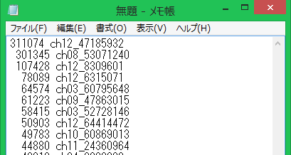 下記はSNPマーカー名(右側)とその読み取り回数(左側)を集めたデータである。