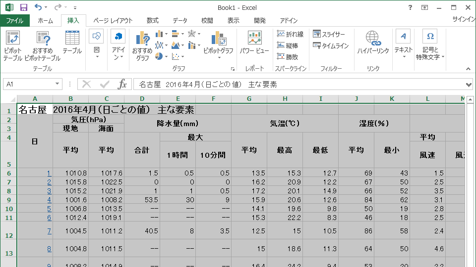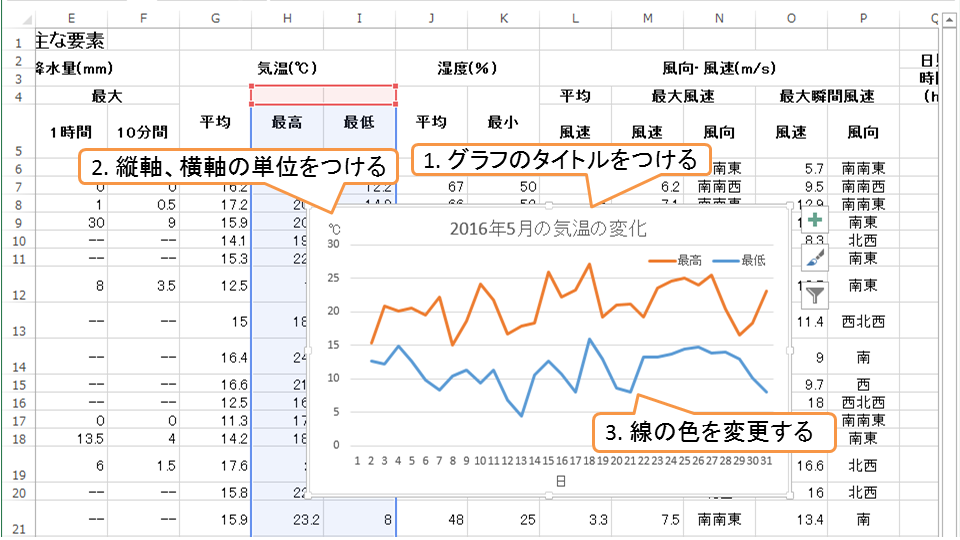 気象庁のウェブサイトでは様々な気象に関するデータを提供している。 今回は2022年5月のデータをExcelに読み込み、気温の変化をグラフにしてみる。
