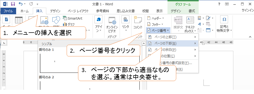 レポートなど複数ページにわたる文書の場合ページ番号をいれるようにしたほうがよい。