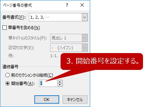 WORDのセクションの機能を使って表紙のフッターを別に設定する。
