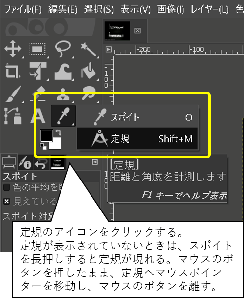 - GIMPの「定規」を選択する。