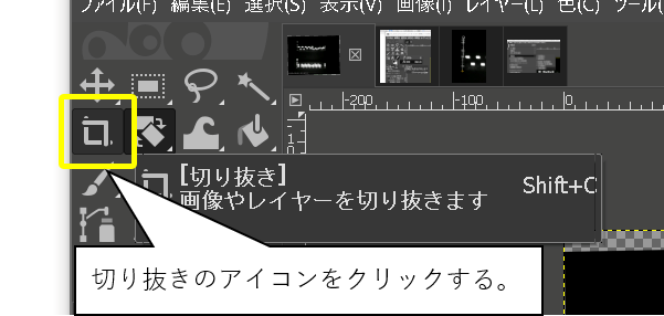 - GIMPの「切り抜き」ツールをクリックする。