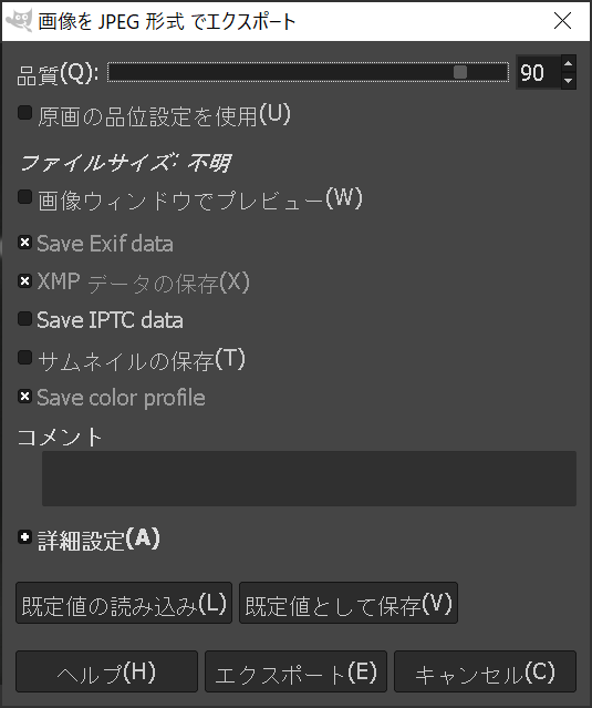 - xcfファイルを保存する。