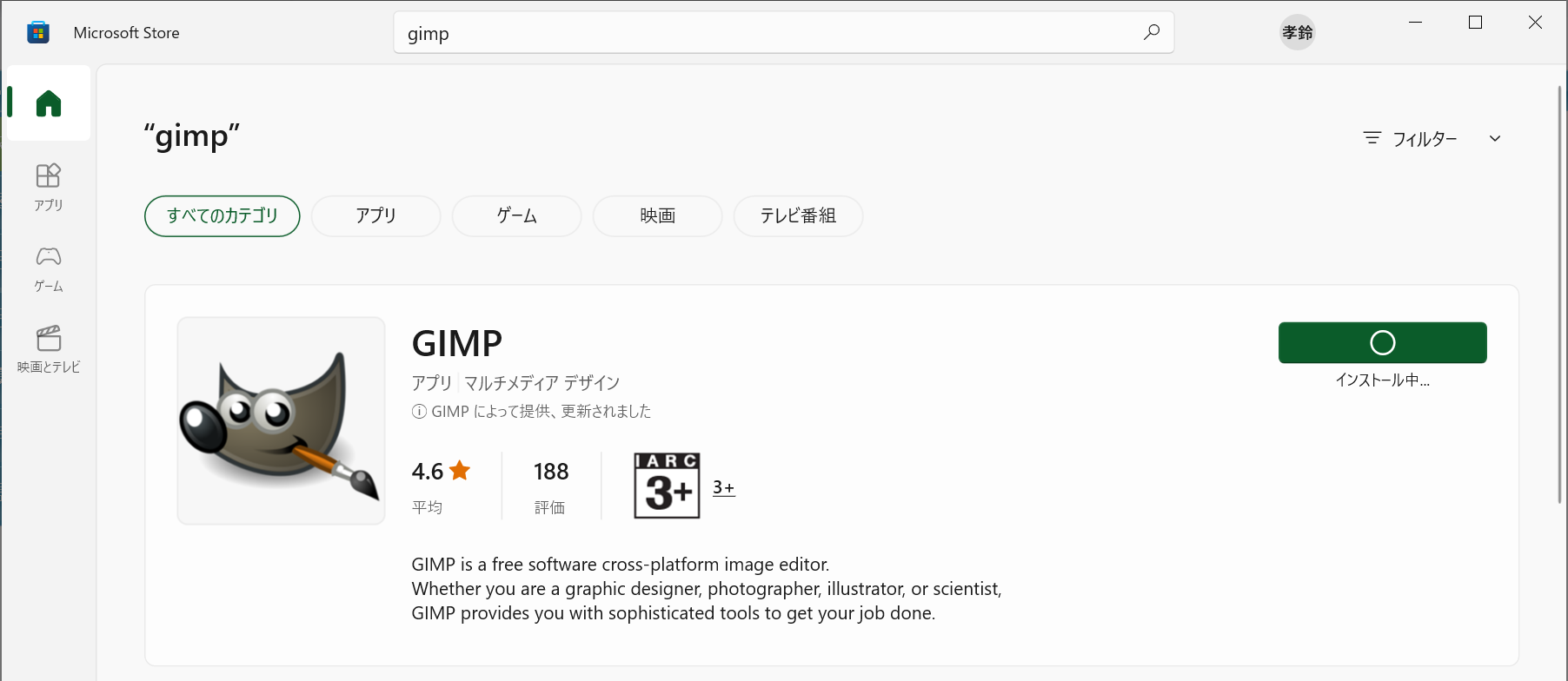Microsoft StoreからGIMPをインストールする。