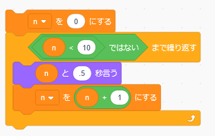 「~回繰り返す」を使っているが、forの繰り返し条件は必ずしも回数でなくてもよい。